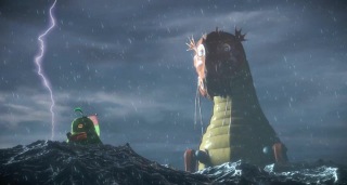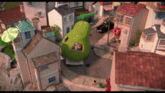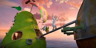 Также в бутылке оказывается семечко груши, которое они сажают в землю. Ночью из него вырастает гигантская груша. Друзья решают использовать ее в качестве корабля.